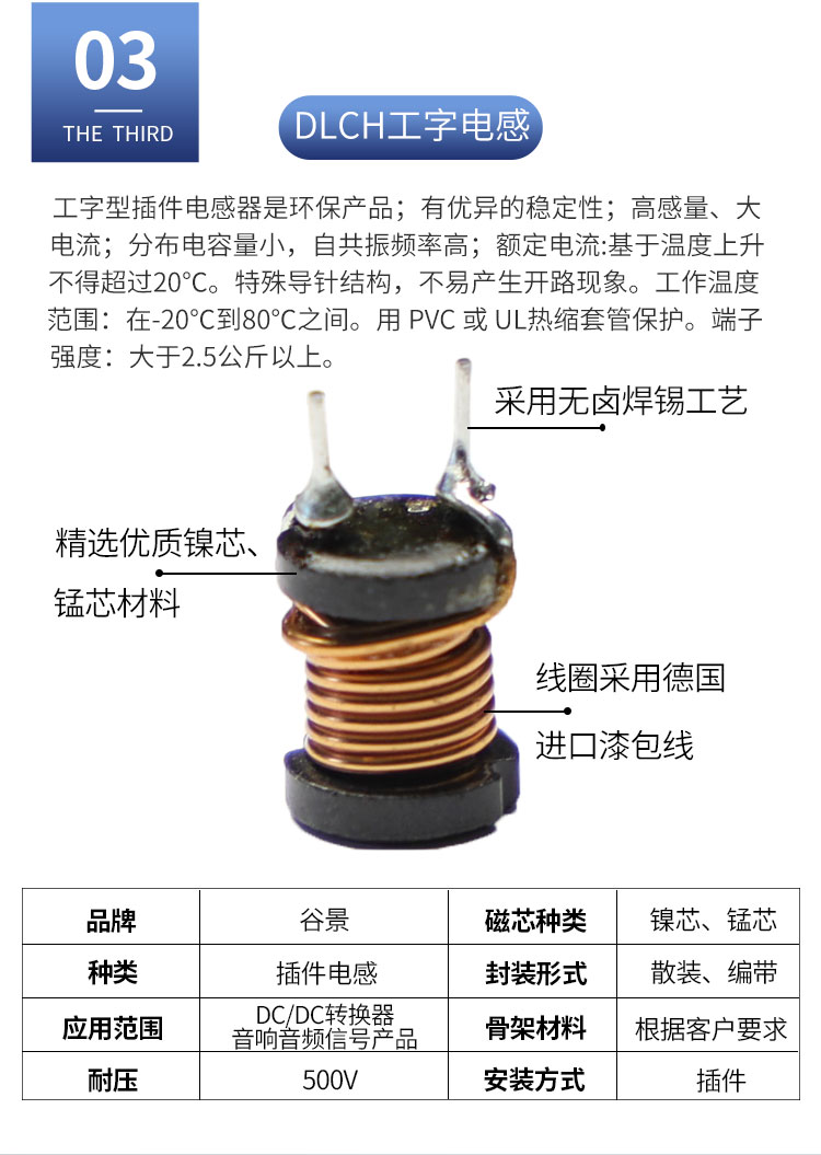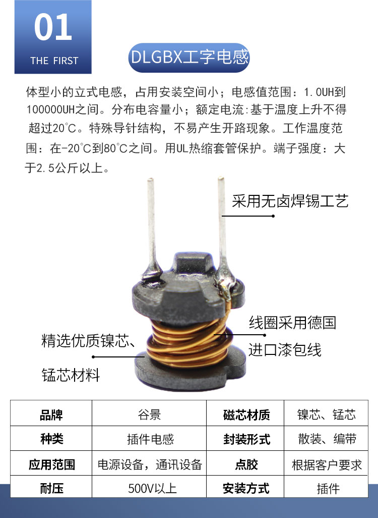 DLGBX工字電感:尺寸:4.5*7.0-18.0*20.0;感量:1uH-100mH;精度:J級(±10%)、K級(±10%)、M級(±20%);電流量:25mA-16.5A;特點:小體積,高儲能;適用于:電視、電源供應器、LED照明等。詳情咨詢:0512-65368862。工字電感,工字電感廠家,工字電感0406,工字電感0608,工字電感0810,工字電感0912,工字電感1010,工字電感1012,屏蔽工字電感,47uh工字電感,33uH工字電感,220uH工字電感,工字電感生產廠家,電感定制,屏蔽工字電感,杭州工字電感,南京工字電感